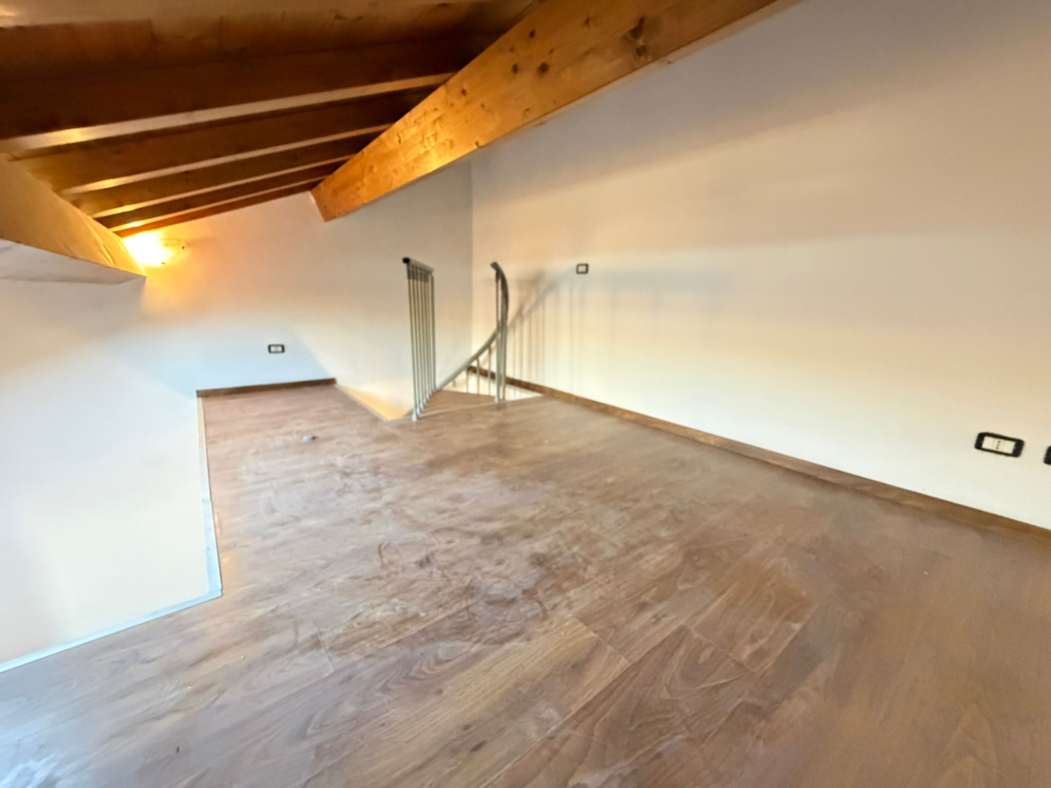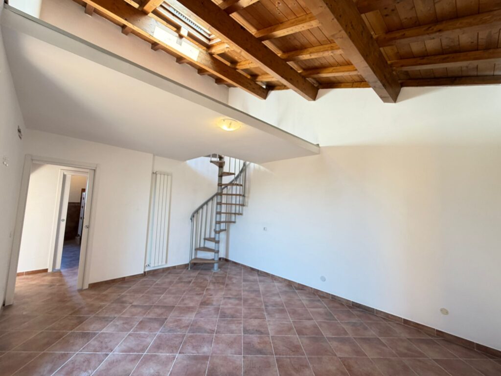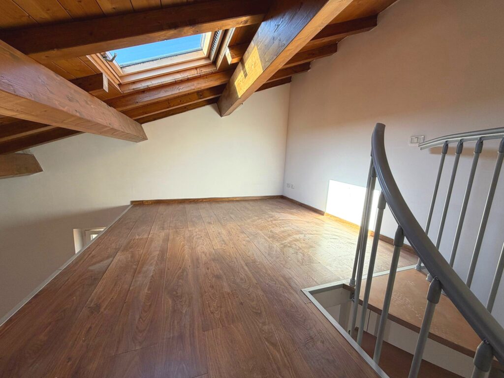 L’appartamento è sviluppato al 2° piano di una palazzina composta da due unità immobiliari. La metratura netta interna è di 85 mq oltre 12 mq circa di soppalchi ed è divisa in un luminoso salone con angolo cottura e due terrazzi, uno di 15 mq ottimo da sfruttare durante la bella stagione, ed uno di circa 5 mq; dal disimpegno si accede all’ampia camera da letto matrimoniale dotata di un comodo soppalco di circa 8 mq, al bagno con doccia ed alla cameretta con bagno interno ed altro soppalco di circa 4 mq.